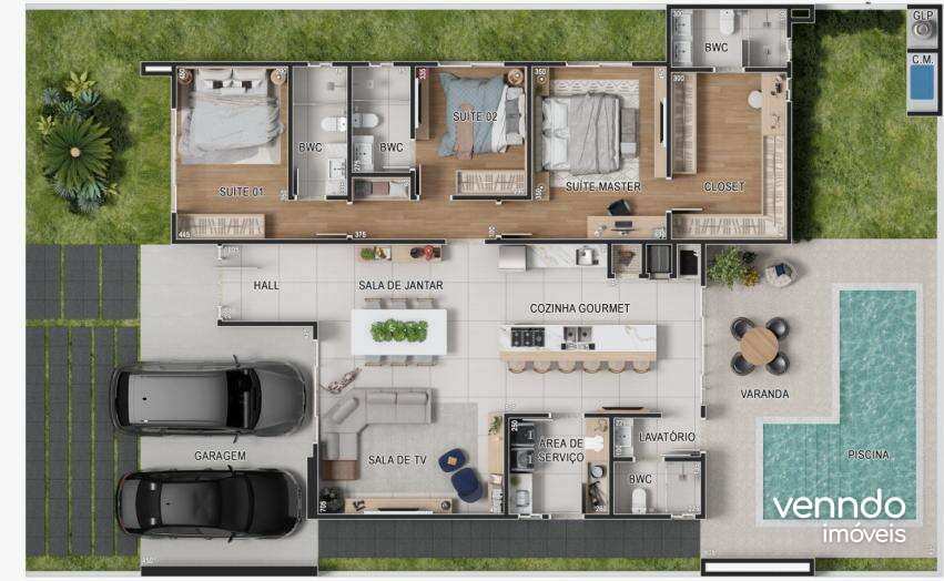3 suítes, garantindo privacidade para toda a família;